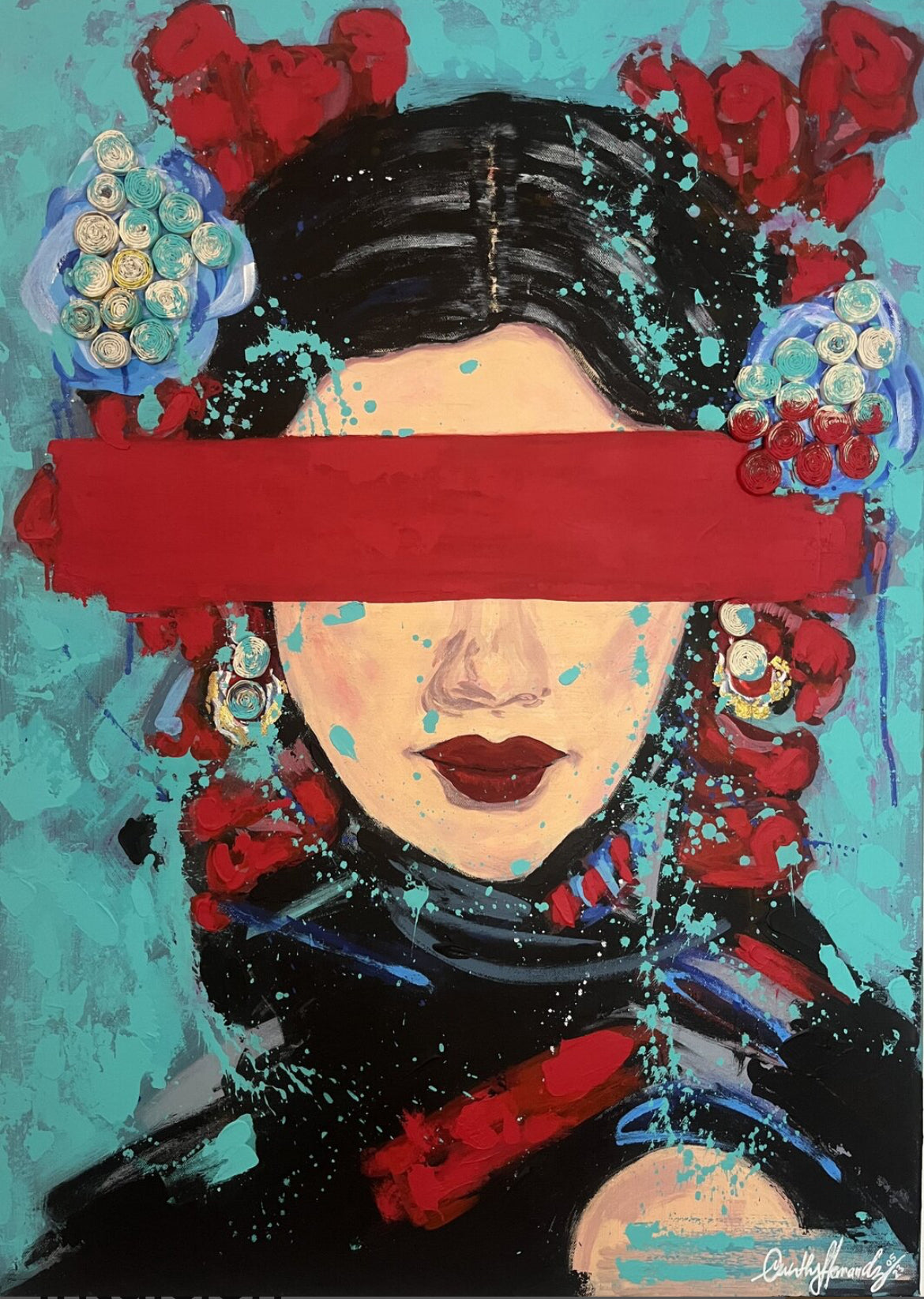 In dieser Arbeit habe ich die Essenz des Expressionismus mit kräftigen Acrylstrichen und Reliefgravurtechniken eingefangen und sie mit einem Hauch von Gold und eingearbeiteten Objekten bereichert, die Textur und Tiefe verleihen. Es stellt ein Kaleidoskop der Emotionen, das zur inneren Einkehr und zur Verbindung mit dem Urinstinkt einlädt. Es bringt eine Welle der Leidenschaft, des Mysteriums und der inspirierenden Energie in jedes Zuhause.